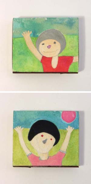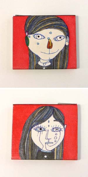 この絵は何の気もなしにマッチ箱に描かれていったものです。絵で有名になろうとか、売って生計を立てようとか一切思わずに。むしろ最初は暇つぶしのためのものだったようで。そして、そのときに自然と選んだモチーフの大半は顔でした。人か何かは良く分かりませんが、目があり鼻があり口がある顔でした。職業ではなく、もちろんノルマもなく、ただ好きなときに描くだけなので5年かけてコツコツと制作されてきたものです。