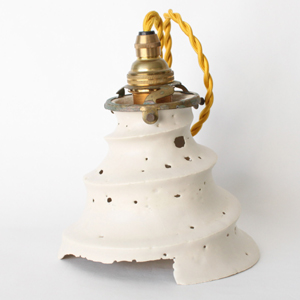 考えてみればすぐ納得がいくのですが、虫食い皿の面白さって「お皿の穴と光の関係」なんですね。で、単純にそこだけを考えていくとランプのシェードが思いつく。光と関係のある磁器製のものだから。