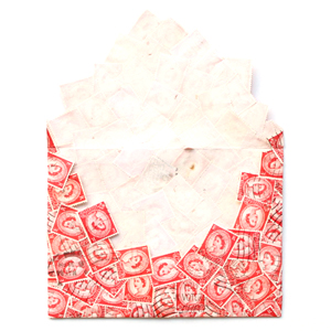 切手を貼りあわせた封筒なので重量的にも軽くって、それもあってかこの封筒自体がすごく「軽い」んです。軽やか。